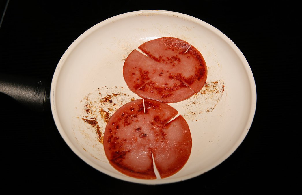 A fried bologna sandwich was standard fare at my house growing up. My mom would cut at least four notches into the bologna so it would lie flat as it cooked in the iron skillet, making it nice and crispy. Then the fried bologna went in between two pieces of white bread.
