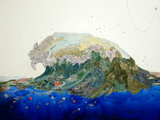 For example, Atlanta artist Donna Mintz took pieces of pottery, a china doll and even an arrowhead found when the waters of Lake Lanier receded and turned it into a series of small scenes atop red clay. Also, artist Loren Schwerd created art from human hair — that is, hair found near a beauty supply store in the lower ninth ward in New Orleans after Katrina. She then took the hair extensions and wove them to emulate photographs of abandoned homes in the neighborhood.