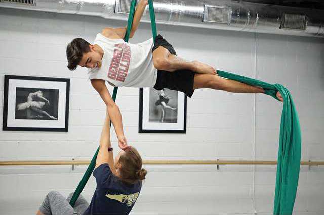 “I don’t take dance classes,” said Molly Day, who plays a gorilla. “So Silks has allowed me to explore another side of the fine arts. It’s given me an outlet for physical expression other than dance. I’m even using it for a physics project!”