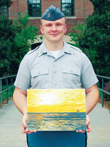 Cadet Master Sgt. James A. Graham II won a second consecutive national art award from the American Society of Marine Artists. The Riverside Military Academy senior received the honorable mention in the 2014 Young Marine Artist Search national competition for his acrylic painting titled “Sunset.” His painting was one of only six pieces chosen to receive a national award.