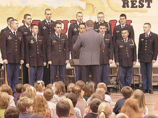 The North Georgia College and State University Patriot Choir recently visited Wauka Mountain Elementary and performed a program of patriotic music. This auditioned group of singers represents the college at military events and is under the direction of Jack Broman.