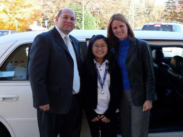 Enota Multiple Intelligences Academy fifth-grader Michelle Nguyen was recently recognized by the Rotary Club of Gainesville as a student of the month. The students are chosen by the staff of their school for their contributions to the school and fellow classmates. Michelle is the daughter of David Cong and Hong Vuong. This was Michelle's first ride in a limousine.