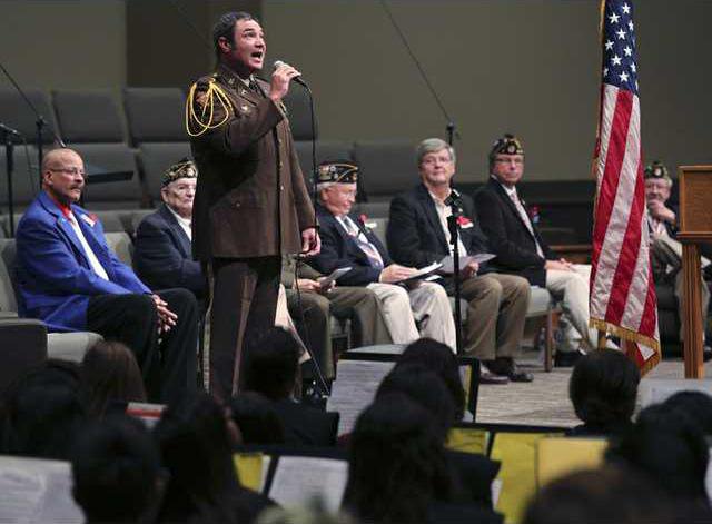 Then there’s the pseudonymous Singing Deputy, the merging of worlds — of night and day. When he puts on the Honor Guard uniform and sings during one of the Memorial or Veterans Day events in Hall County, Jackson is a hybrid host of ceremony and spectacle.