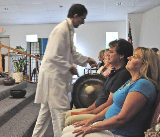 Tenzin Lama Sherpa was given a welcoming ceremony by gongmaster Yogi Ray, who played a series of meditative gong instruments. The hand-crafted gongs are said to radiate a positive energy as they resonate.