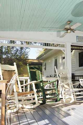 At Bob Thompson's house in Gainesville, the light blue color highlights the front and back porch ceilings, along with the carport's ceiling.
