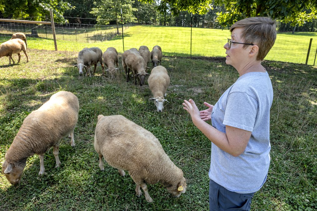 On a thoroughfare where the tide of motorists continues to swell, a flock of Gulf Coast sheep graze on unfazed, sheltered by 20 acres of tucked-away farmland and their shepherdess’ devotion to sustainability.