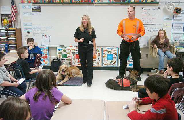 Molly, a golden retriever, and Zena, a German shepherd, were recent guests of a Sardis Enrichment School class.