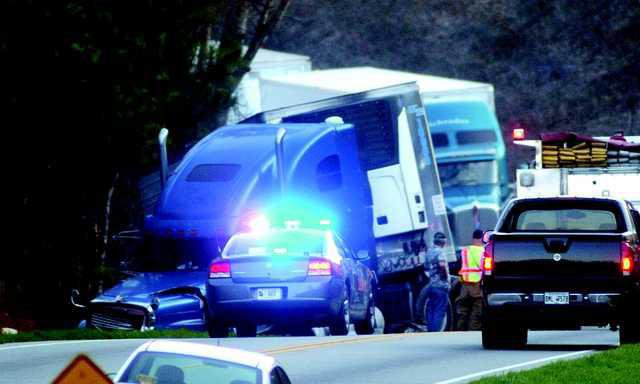 The Thursday afternoon accident involved a tractor-trailer and another vehicle. Traffic was backed up on the highway and detoured onto Wallace Road.