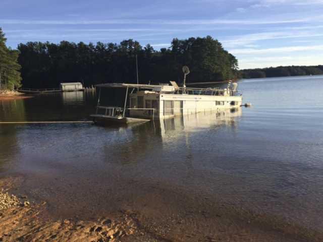 A Lake Lanier group’s crusade to rid the lake of abandoned docks and vessels has hit some choppy waters as it works to dispose of a sinking houseboat that belonged to a late Flowery Branch man. The craft has sat on the shoreline near Sunrise Cove Marina in West Hall County since Michael Gilmer, 61, of Flowery Branch was found dead near it Sept. 23, said Joanna Cloud, executive director of Gainesville-based Lake Lanier Association. The boat started sinking and today, “the vessel is almost entirely underwater,” she said.