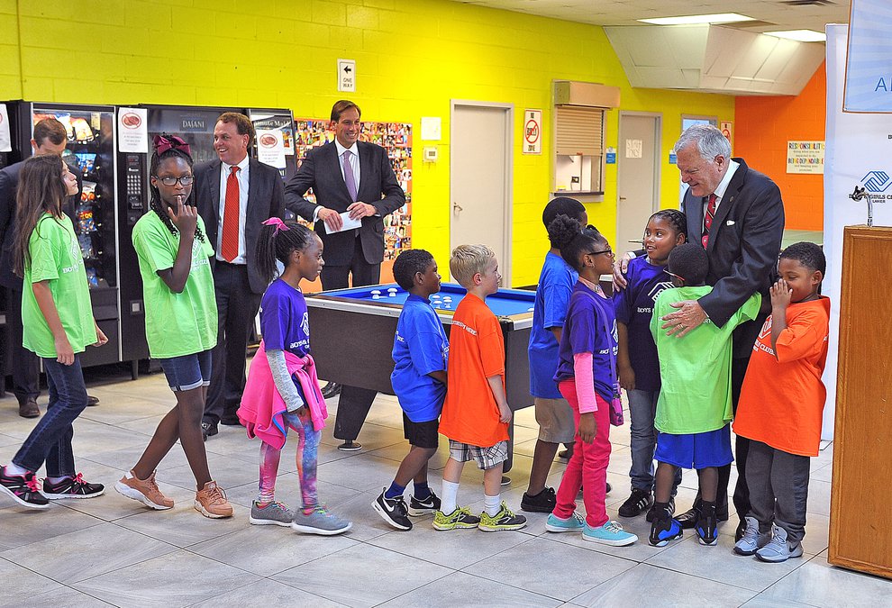 Flanked by a group of children at the Boys & Girls Clubs of Lanier, Gov. Nathan Deal helped dedicate the organization’s new $16,000 computer lab Tuesday. He emphasized the importance of technological skills in gaining higher-paying jobs when those children become adults.