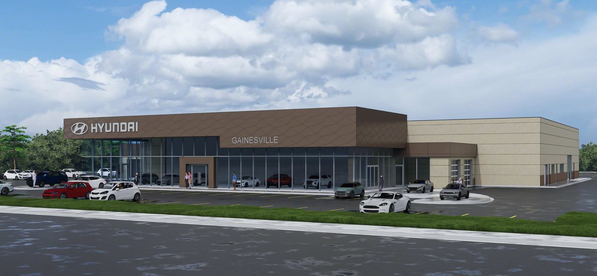 Gainesville Hyundai has opened temporarily at 2407 Browns Bridge Road, Gainesville, in the old Jacky Jones Lincoln dealership, and has plans for a permanent location at 3126 Atlanta Highway/Ga. 13, Oakwood. (Rendering provided by Krause Auto Group)
