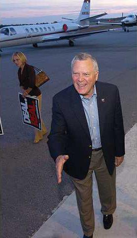 Deal and his wife Sandra stepped off the small plane smiling and holding hands as they waved to friends holding signs and sporting campaign T-shirts and stickers.