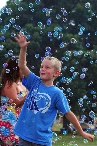 Hundreds of people sat around the G.W. Bailey Amphitheater on Gainesville State College's campus Friday night listening to live music, playing in a shower of bubbles and awaiting the fireworks.