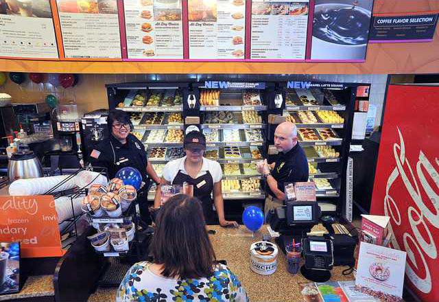 Dunkin’ Donuts customers chucked spare coins or change from the morning coffee pickup into a bucket Friday, donating more than $1,000 countywide to law enforcement officers supporting the Georgia Special Olympics. Police departments from Oakwood and Gainesville joined the Hall County Sheriff’s Office and the Department of Juvenile Justice in collecting money Friday morning at the doughnut shop locations in Gainesville and Oakwood. Gainesville Police Sgt. Kevin Holbrook said the total haul was $1,747.