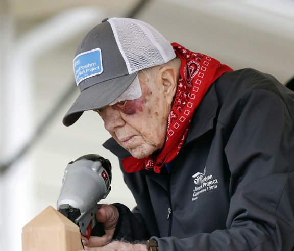 Carter fell at home on Sunday, requiring 14 stiches, but he did not let his injuries keep him from participating in his 36th building project with the nonprofit Christian housing organization. He turned 95 last Tuesday, becoming the first U.S. president to reach that milestone.