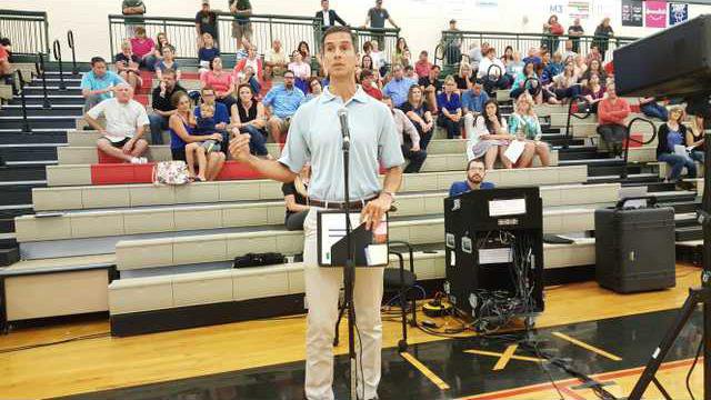On the site of Hall County’s next middle and high schools, residents and school officials engaged in what was often lively discussion with words like “gerrymandering,” “conflict of interest” and “transparency” about where attendance lines should be drawn. The second of two public hearings on the redistricting plan was held Tuesday night at Flowery Branch High School. The school will be the home of the new middle/high school once it opens in August 2018.