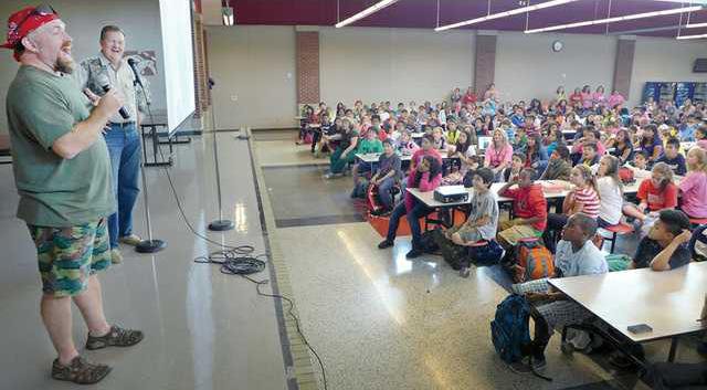 Gainesville students were happy, happy, happy with the appearance of a surprise guest at their school on Friday. Phillip McMillan, a character on the hit A&E television series “Duck Dynasty” dropped by Gainesville Middle School as the school’s sixth-graders gathered in the cafeteria under the guise of a routine meeting. It was anything but routine when his cousin, Bart McMillan, first came out practicing duck calls.