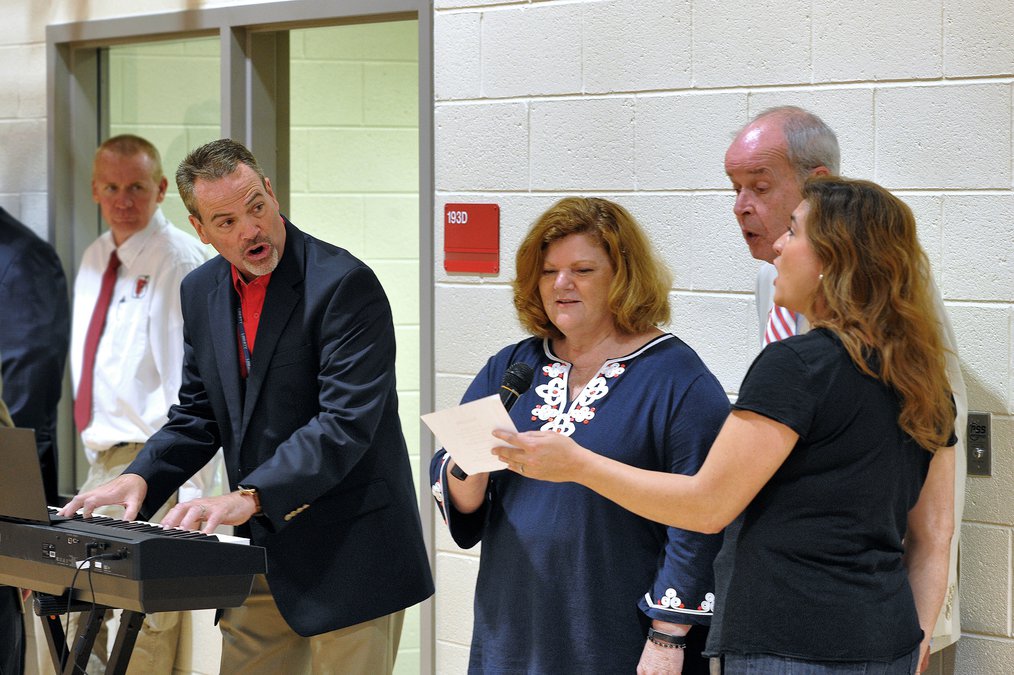 Then Roach called on the audience to sing the school song with him as he played a keyboard in what became a joyous celebration of the school’s promising future.