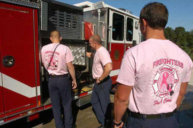 Gainesville and Hall County firefighters are sporting pink T-shirts for the next week in support of Breast Cancer Awareness Month.