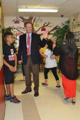 Teachers and students lined the halls of Enota Multiple Intelligences Academy Friday morning to say goodbye to their friends. The Gainesville school system marked its last day of classes Friday, and Enota said goodbye to its fifth-graders with an annual celebration called the “elephant stomp.” Principal Wesley Roach led a parade of fifth-graders down the halls one last time, giving the students a chance to say goodbye to their old teachers and the younger students.