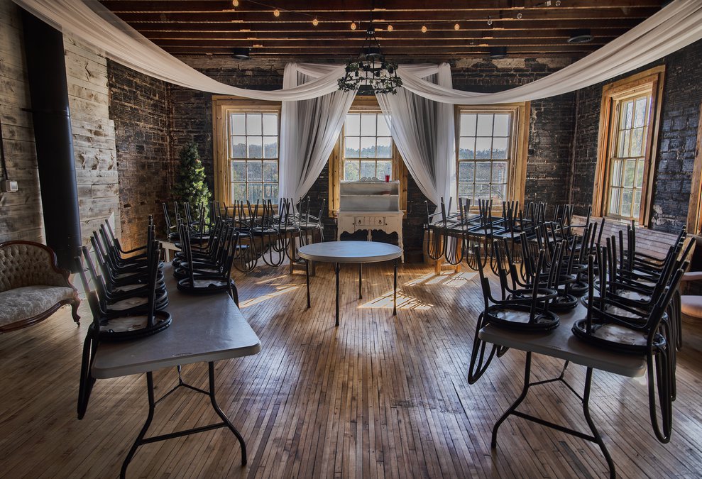 What was once dubbed “the ghost room” because of its years of debris and boarded-up windows has been transformed into an airy room for weddings and other celebrations.