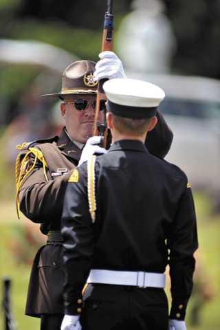 In a more somber setting across town from the annual Memorial Day Parade on Green Street, honor guards took part in a 24-hour changing of the guard as part of an annual Memorial Day vigil. The Hall County Sheriff’s Office and Hall County Fire Services participated in the event at Memorial Park Cemetery off Memorial Park Drive in Gainesville. “We owe it to the heroes that died and the loved ones left behind to make sure that their sacrifices are remembered and that their service to this nation will always be honored,” Sheriff Gerald Couch said during a brief noon ceremony.