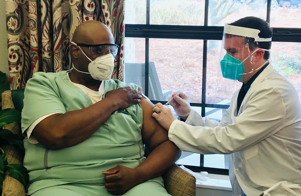 Nursing home staff members in Gainesville were receiving some of the first COVID-19 vaccine doses allocated to long-term care facilities Monday, Dec. 28.
