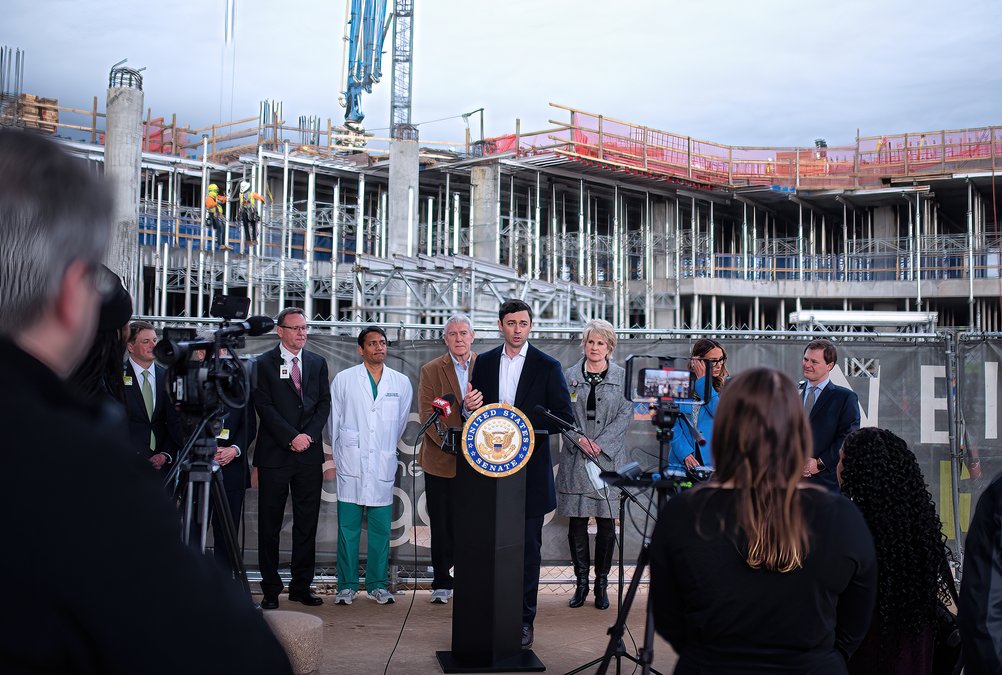 U.S. Sen. Jon Ossoff held a press conference alongside local leaders at Northeast Georgia Medical Center Wednesday, talking over the commotion of hammers clanking against steel beams as construction crews continued work on the hospital’s expansion of its North Tower.