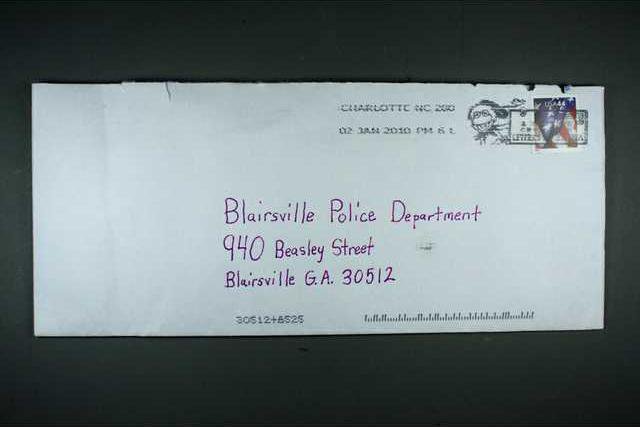 The letter, which was printed from a computer and mailed to the Murphy, N.C., and Blairsville police departments in January in hand-lettered envelopes, is purported to be from "a concerned grandmother."