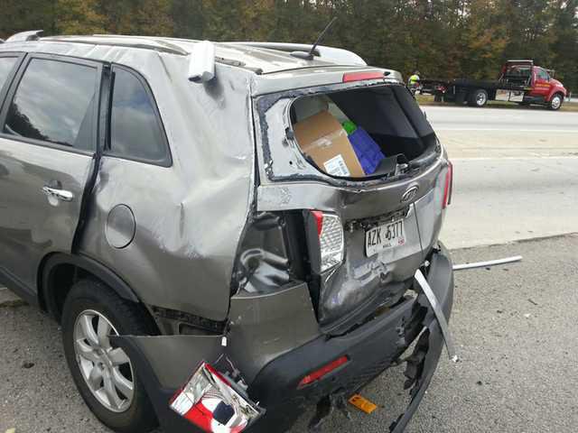 The Georgia State Patrol reported that the call came in at 8:14 a.m., and a nearby trooper arrived immediately. Laura Simms said the trooper who had been on the side of the road approached her a few minutes after the accident. Two minutes after the call, the trooper advised there was a woman with a possible shoulder injury and requested EMS units, which were en route at about 8:19 a.m.