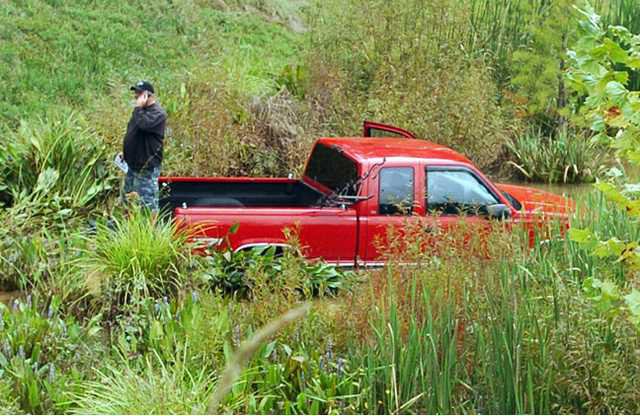 A man drove his truck into the retention pond off Bradford Street on Wednesday evening and came out with no injuries.