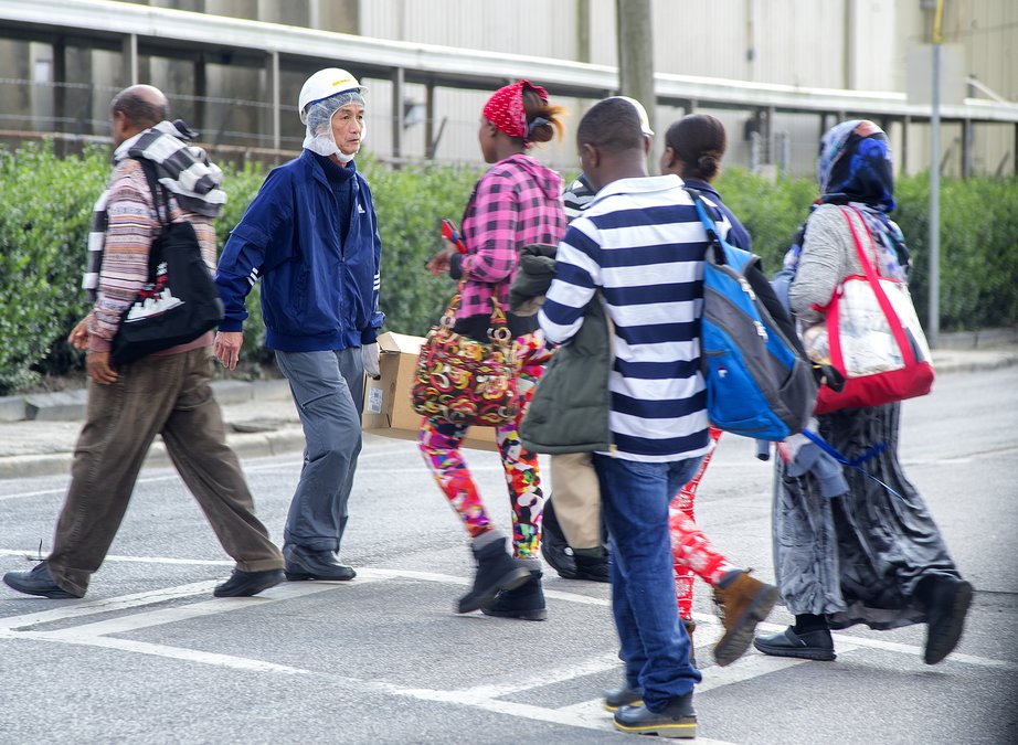 During a late afternoon shift change at Pilgrim’s Pride in Gainesville, scores of poultry processing plant workers pass each other like commuters during rush hour at New York’s Grand Central Station.