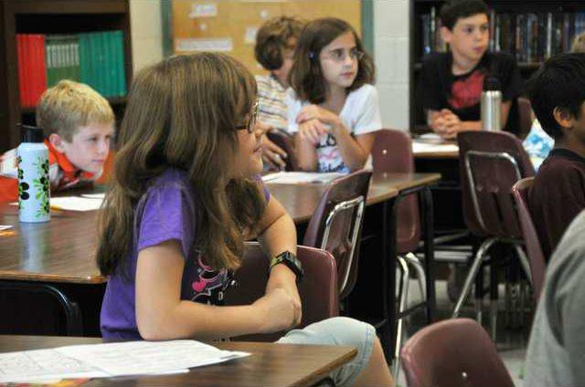 Although Monday was like other first days of school for the fifth-graders, hints of upcoming projects already began to show. After outlining class rules and doing an icebreaker game, Oke took her students to the media center to introduce herself. She showed them a video on her teacher website about her hobbies, family and likes and dislikes.