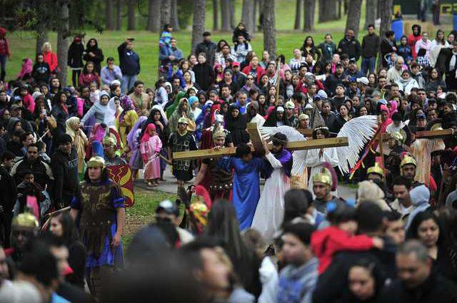 Members of St. Michael Catholic Church spend Good Friday at Laurel Park for the living Stations of the Cross. The annual event, put on by the church and attended by hundreds, takes place at various locations along the walking path. of the park. Stations of the Cross are as follows: 1st: Jesus is condemned to death.