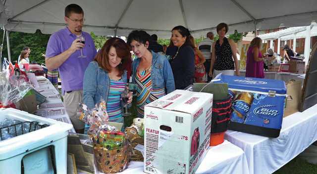 Concertgoers look over items in a silent auction Saturday night at the Rock in the Spring fundraiser at Brenau University ampitheater. Proceeds benefit the local school Challenged Child and Friends, an early intervention center in Gainesville that provides special needs and typically developing children the opportunity to learn together and from each other. Local musicians Mid Life Crisis played at the event.