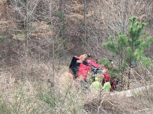The northbound exits 16 and 17 of Interstate 985 were shut down for a few hours Monday afternoon after a vehicle crashed about 100 feet down an embankment, according to Gainesville Police.
