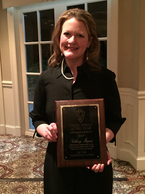 On behalf of the State Bar of Georgia, I would like to express congratulations to attorney Bethany Sauls Magnus of Whelchel Dunlap Jarrard & Walker LLP on receiving the 2018 Young Woman of the Year award, presented by the Gainesville Jaycees.