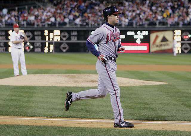 Scott Eyre came in to face Chipper Jones, who drove one to the seats in left for a 9-3 lead. Jones passed Duke Snider for 42nd on the all-time list with 408 career homers.