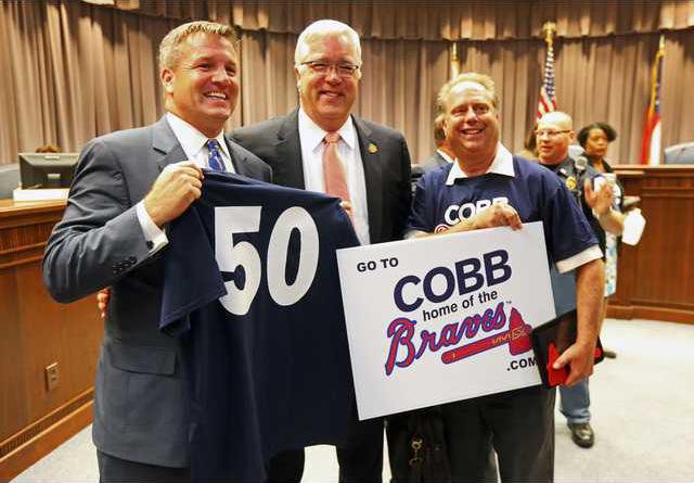 MARIETTA — Cobb County leaders on Tuesday approved seven agreements governing the Atlanta Braves’ move and plans to build a new stadium. The Cobb County Commission voted 5-0 on an operating agreement that calls for the Braves to occupy the new stadium for at least 30 years. Opponents to the move and stadium deal spoke out during the meeting, and local news media outlets reported that some were asked to leave for being disruptive.