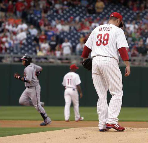 “I don’t know what we can do,” manager Charlie Manuel said of Myers’ struggles. “Just send him out there and see how it goes.”