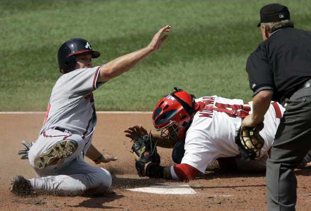 Right fielder Ryan Ludwick squashed the Braves’ only other scoring chance when he threw out Jones trying to score from second on Prado’s two-out single to end the sixth.