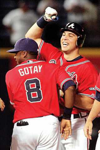 Gregor Blanco finally did, after singling off Tim Byrdak (2-1) to lead off the 17th. Yunel Escobar followed with a bunt single and Chipper Jones loaded the bases with a base hit to right, before Teixeira’s ball went over the head of a drawn-in outfield for the winning hit.