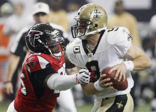 NOTES: With Turner on the sideline, the Falcons were held below 100 yards rushing for the fourth week in a row. They went over 100 yards in six of their first nine games. ... Brees tied Aaron Brooks’ franchise record with his final TD pass, the 120th of his Saints career.