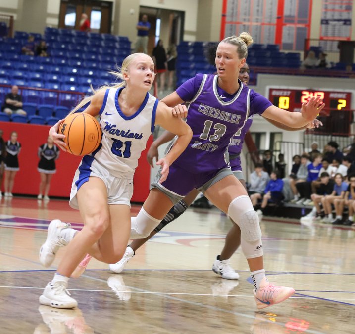 Cherokee Bluff's Bristol Kersh (13) defends against Oconee County during the Region 8-3A championship on Feb. 20, 2026 at The Arena in Jefferson. Photo by Bill Murphy