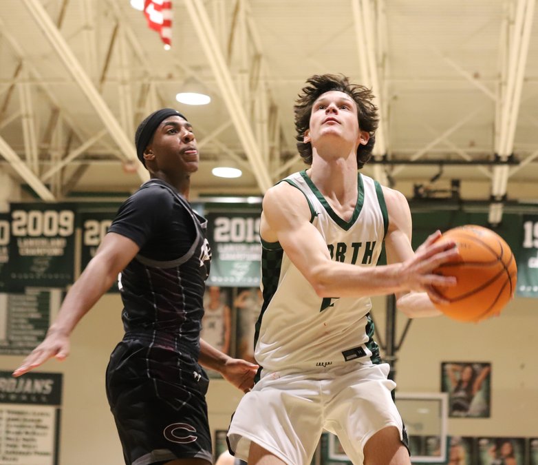 North Hall's Gunner Spain (2) goes up for a basket against Chestatee on Jan. 20, 2026 in Gainesville. Photo by Bill Murphy